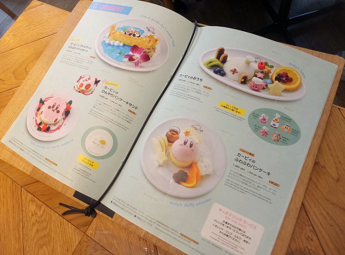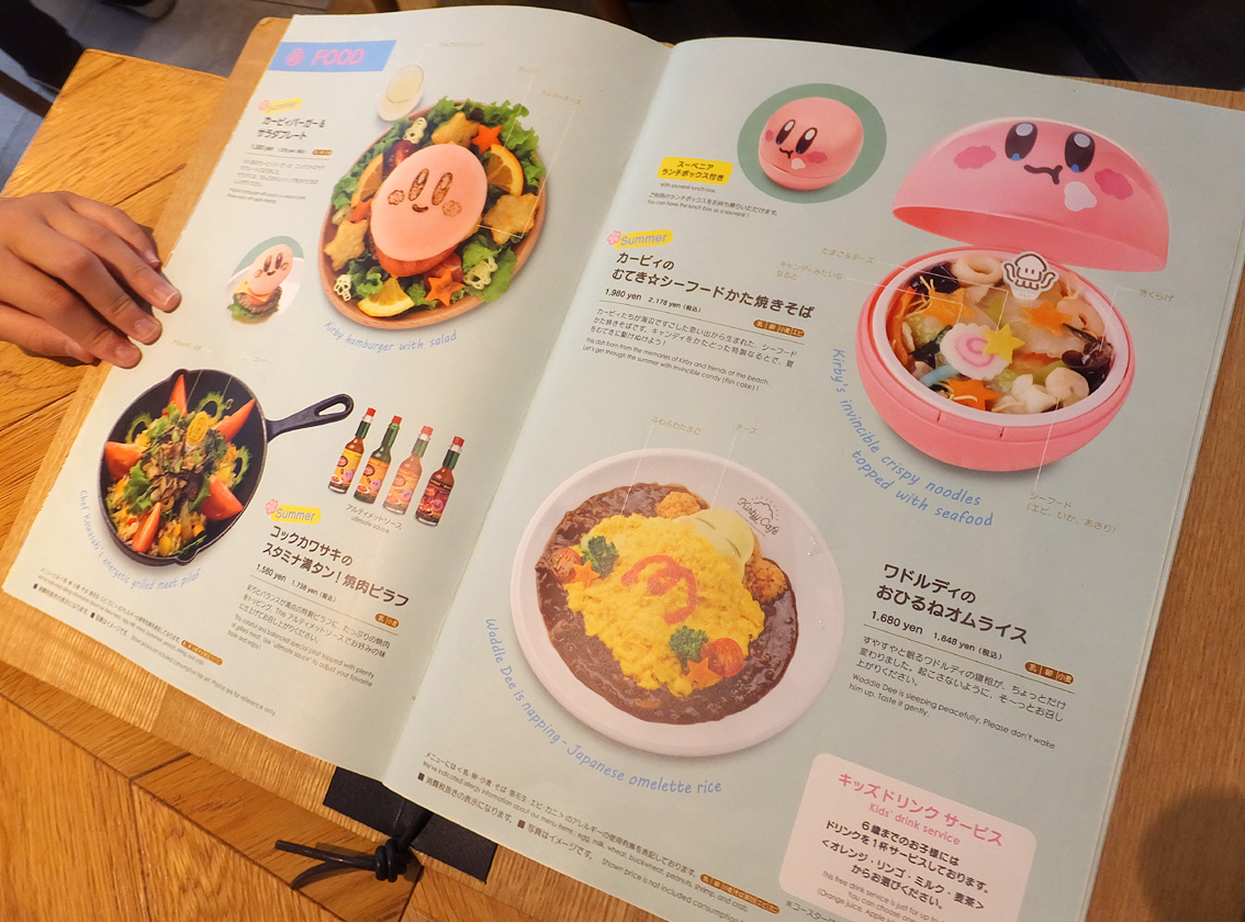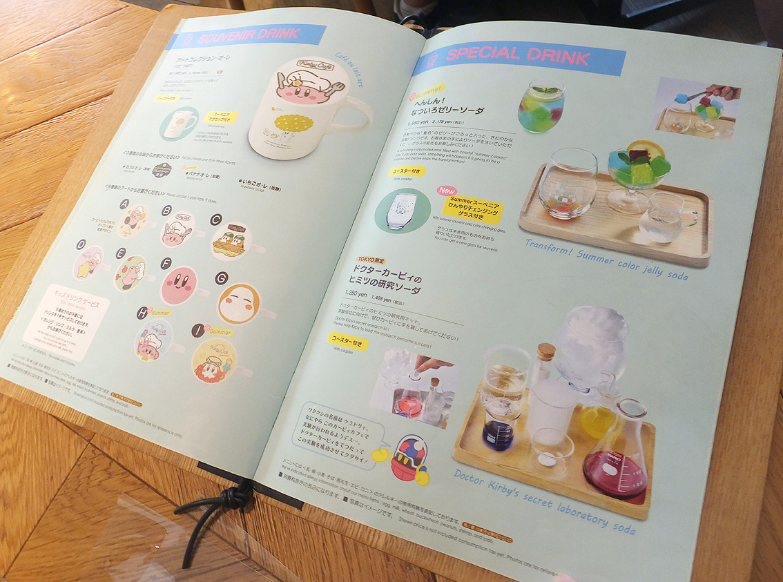 夏限定の涼し気なメニューが並ぶカービィカフェ。