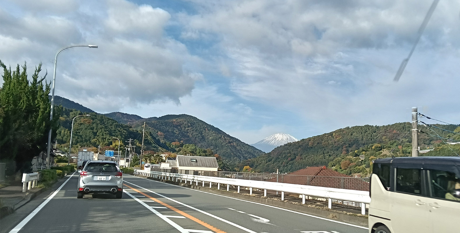 道中富士山がめちゃくちゃ綺麗に見えました。冠雪して美しいです。