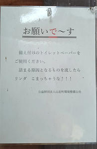 玄倉商店前のトイレ個室の張り紙。こんな地味な所で和ませて貰えるとは(笑)