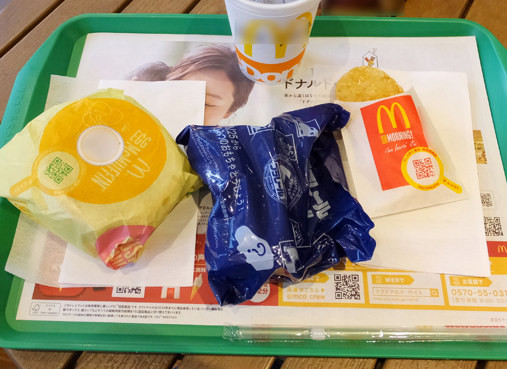 おまけ。その後別店舗で朝の時間帯を予約し、体験した朝マックメニュー。