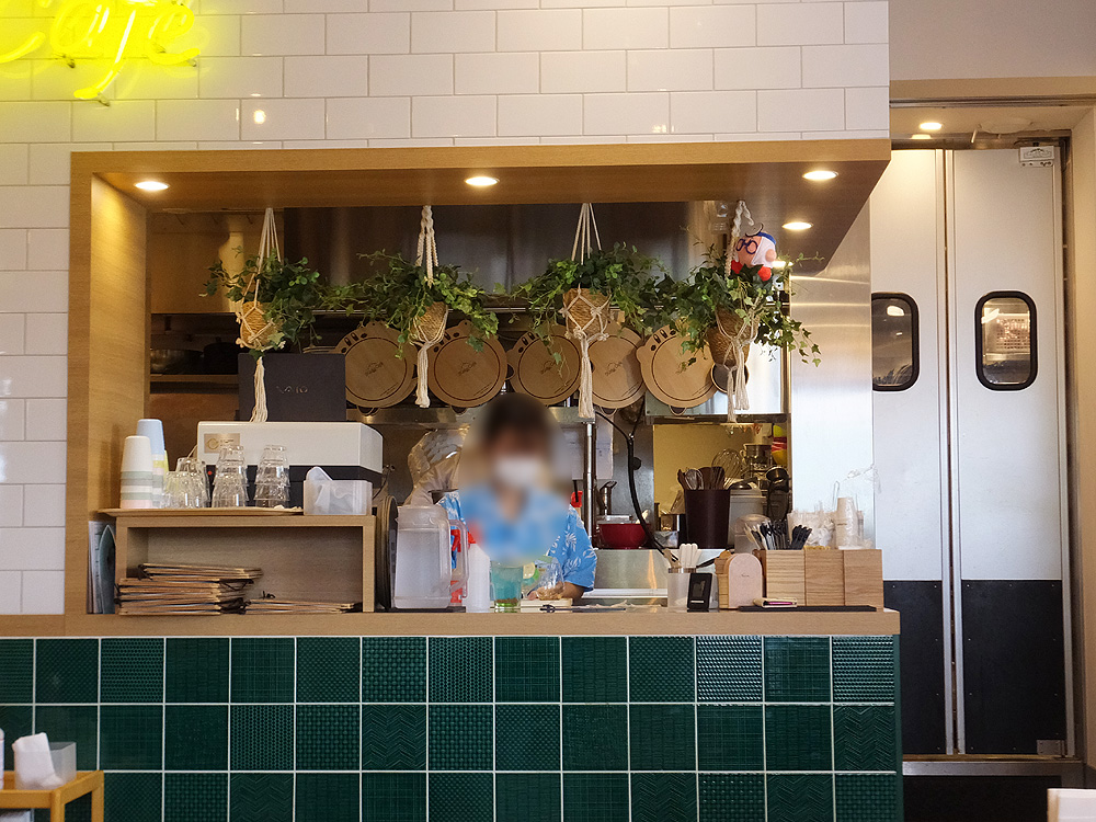 そのカウンターのすぐ横にあります。カフェ内に入らなくても