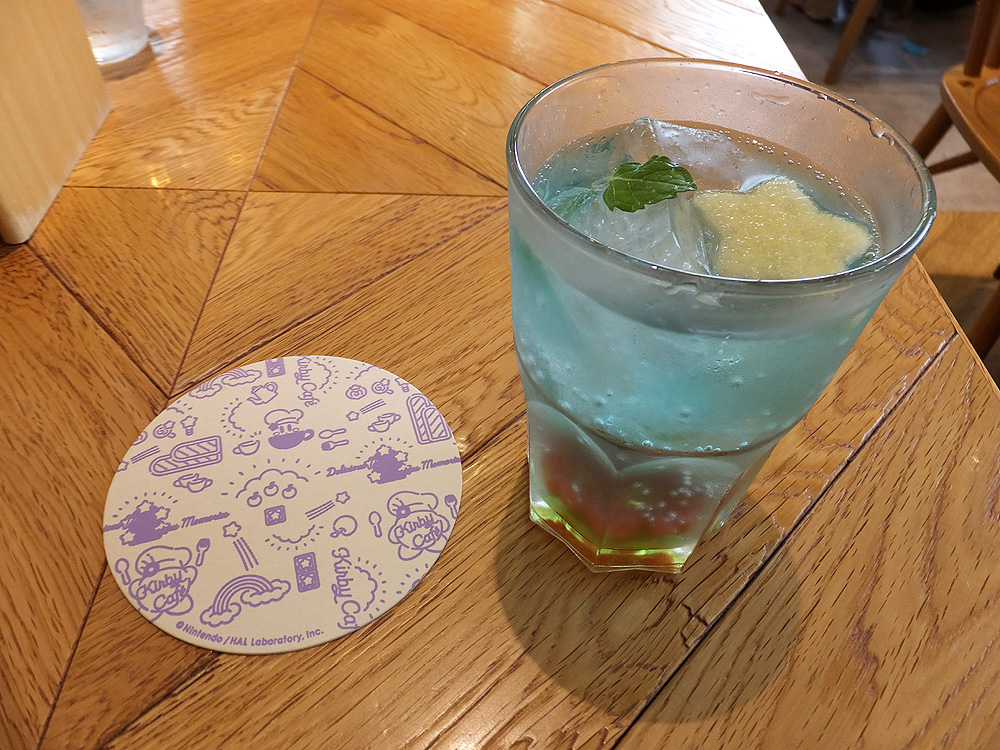 子供が注文した「ドクターカービィのヒミツの研究ソーダ」です。