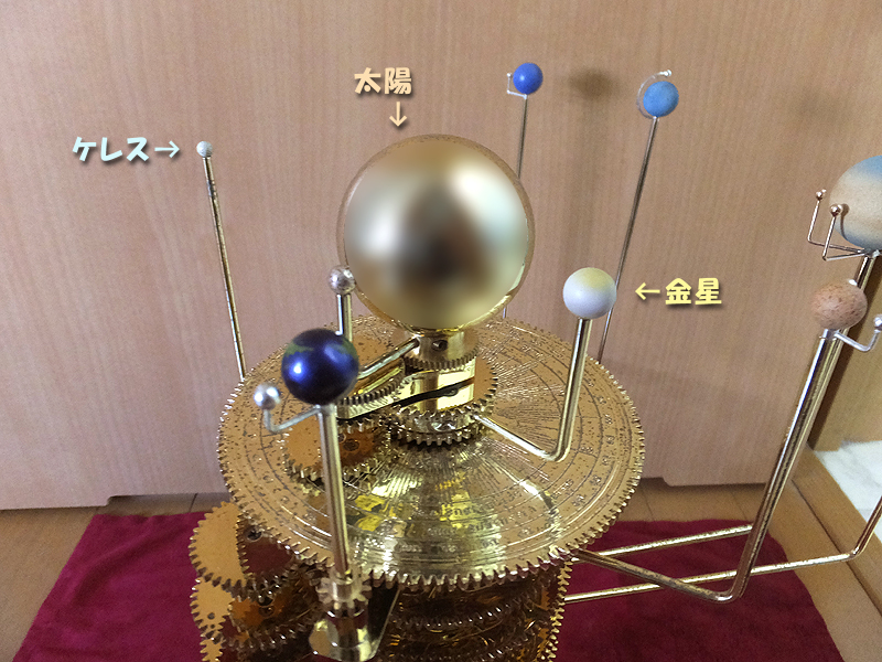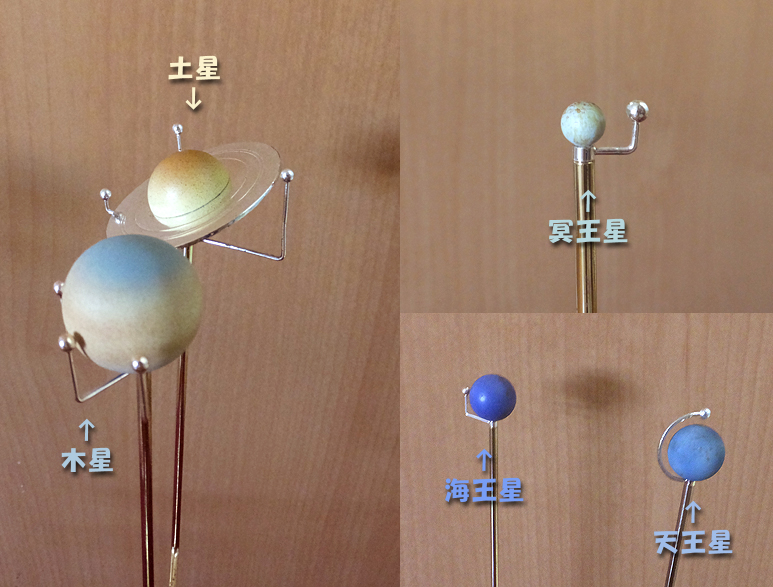 お隣の写真は太陽付近の惑星たち。小さいけど衛星も再現。