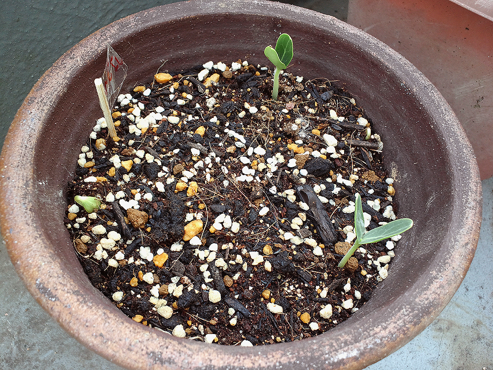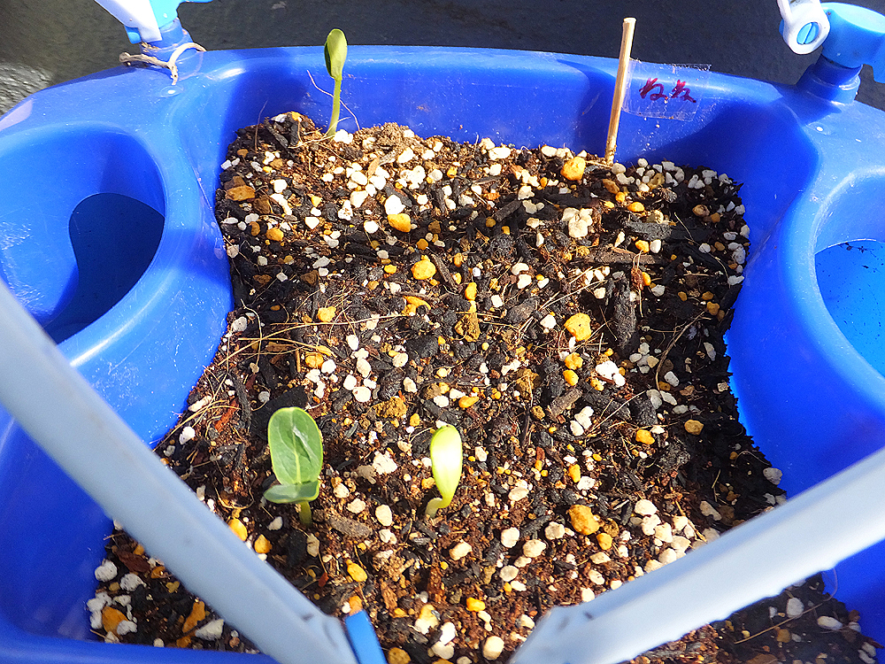 先日撒いた千成ひょうたんの種が目出度く発芽し、