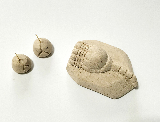 百均の木の粘土を使い、乾いてから紙やすりとクラフトナイフで仕上げました。