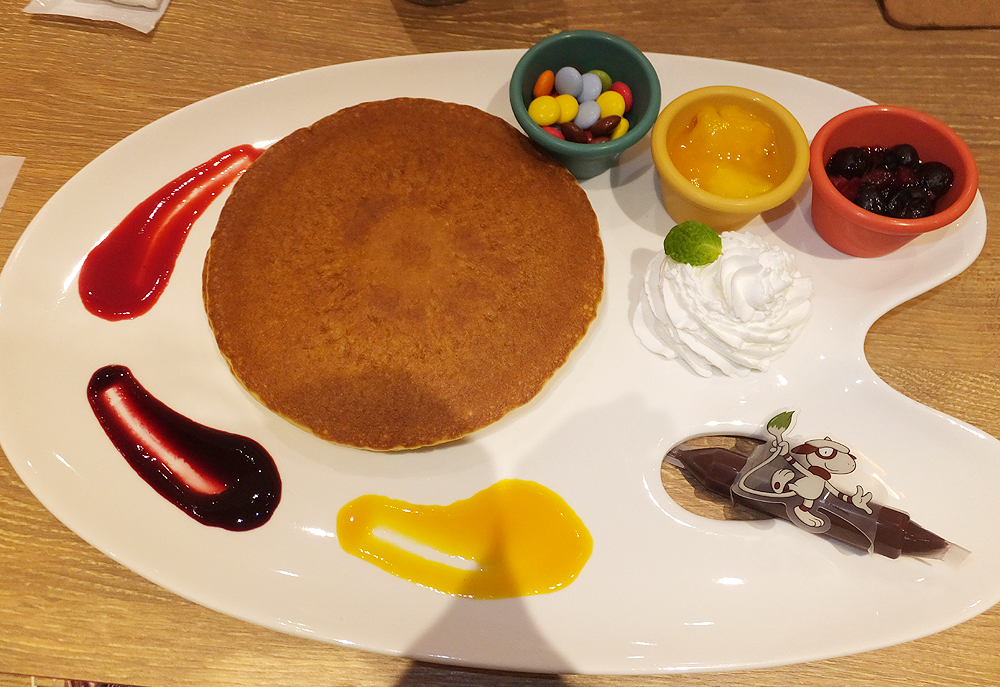 ドーブル君のお絵かきパンケーキです。トッピング色々。ソースも色々。