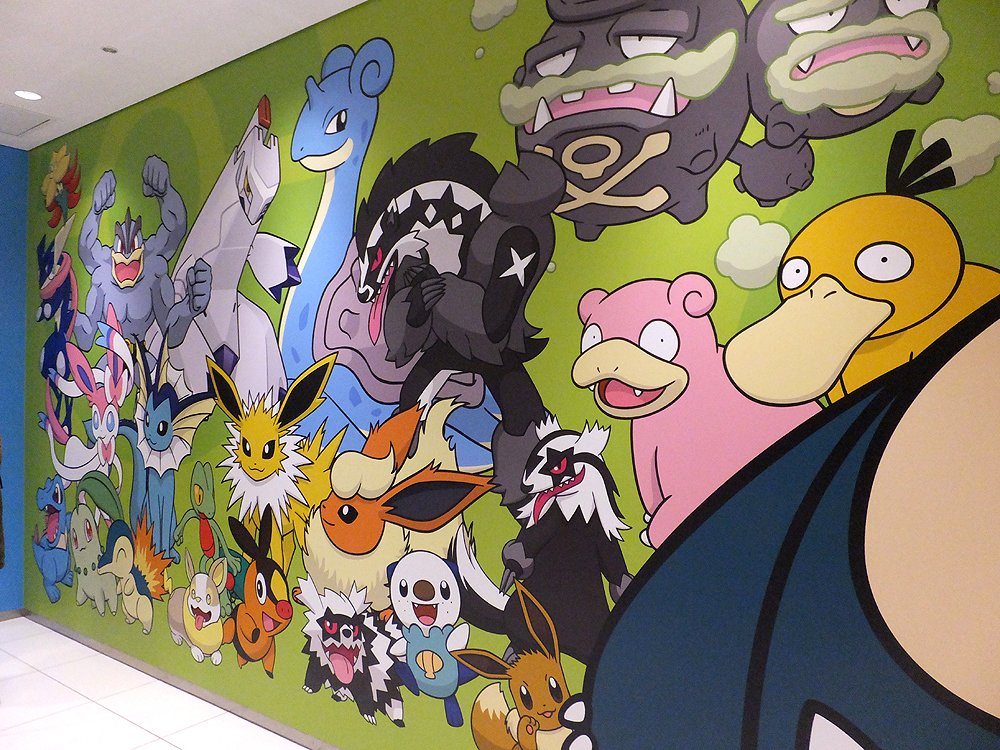 エレベーターホールを曲がると壁面いっぱいにポケモンたちが!