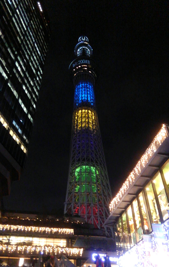 そびえるスカイツリーが一層美しい。この日は五輪200日前ということで