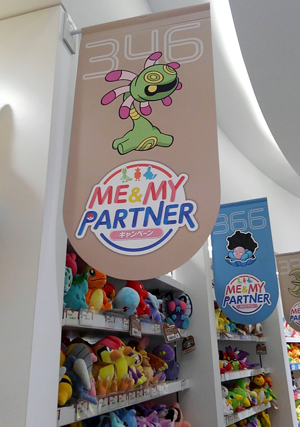 店内のデカいピカチュウカップルとパチリ。自作デンヂムシ君は