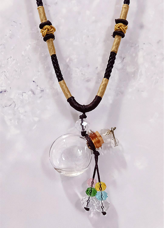 彼のイメージで選んだ、ガラスのアロマペンダントに小分けしました。