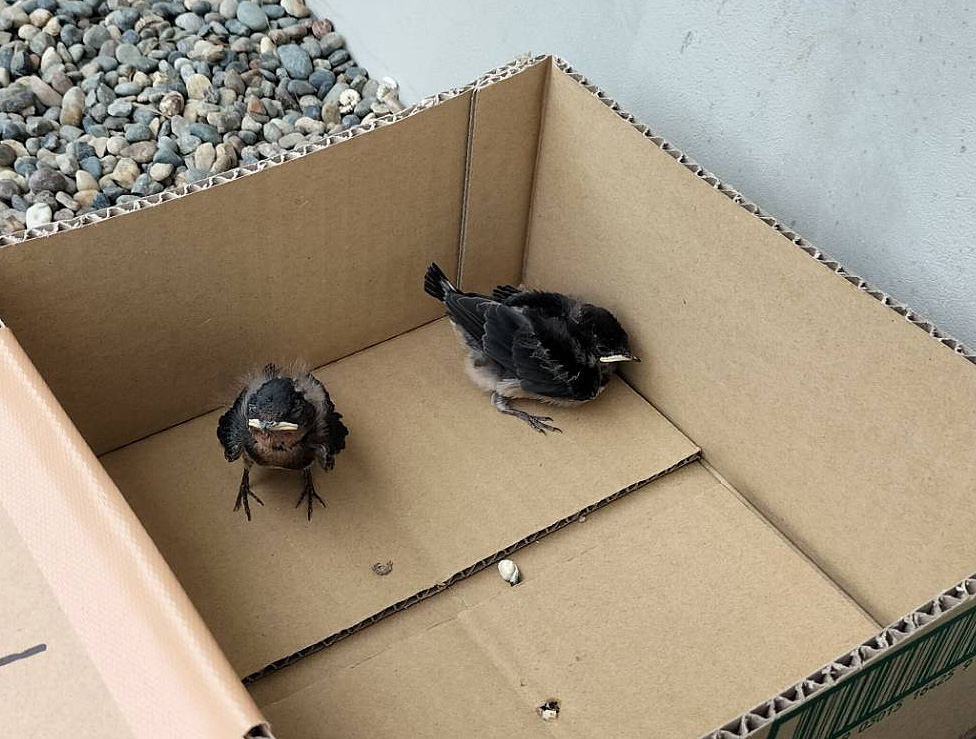 よくよく聞けば前日も3羽巣から落ち、社員が巣に戻したとのこと。