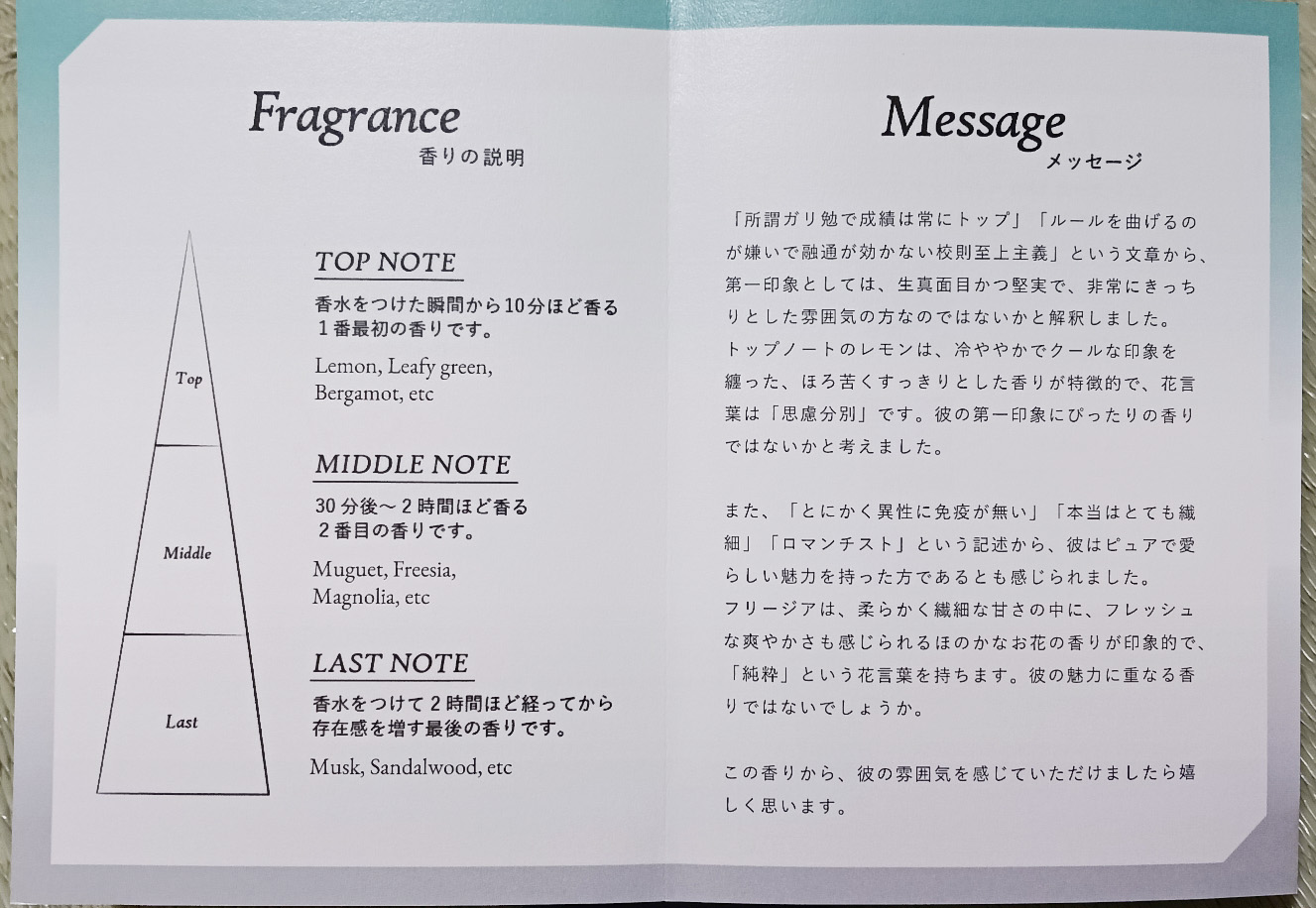 レターの本文。もうね、調香師さんの解釈が素晴らし過ぎて!